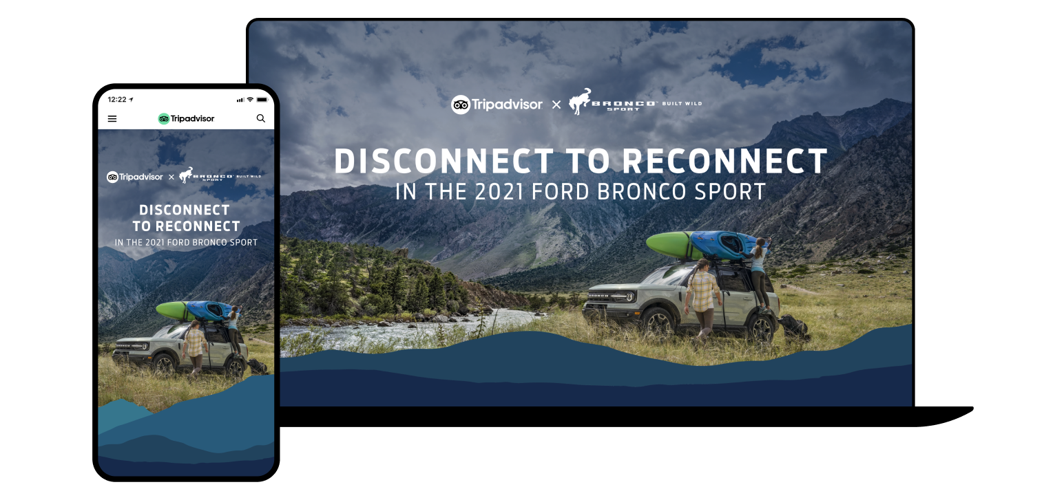 For this custom experience and influencer video series, the initiative was to create a custom landing page that housed various influencer bios, gallery images, Ford Bronco vehicle informations and promotions, and of course a suite of traffic drivers to direct viewers to this custom hub.